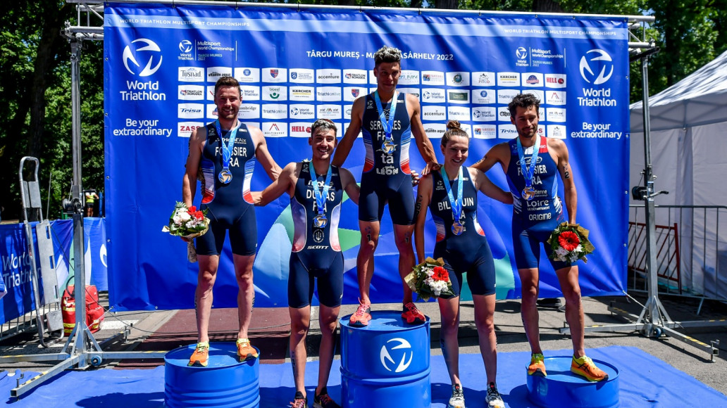 Les Français sont décidément les rois du Cross Triathlon. Cet après-midi à Targu Mures (Roumanie), la délégation tricolore a récolté pas moins de six médailles (1 en or, 2 en argent, 3 en bronze).