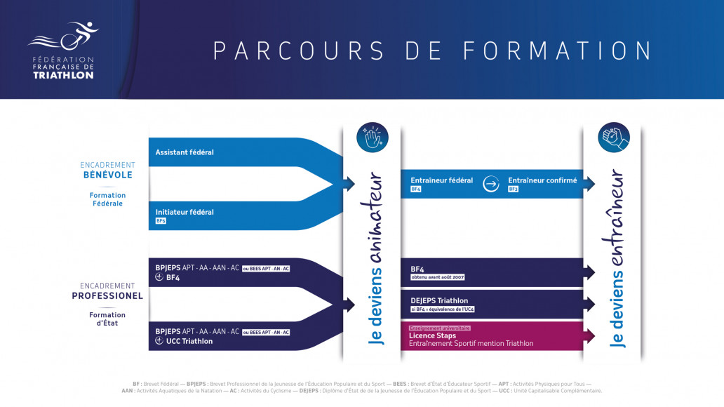 La F.F.TRI propose une large possibilité de qualifications à destination des bénévoles ou des futurs éducateurs professionnels.