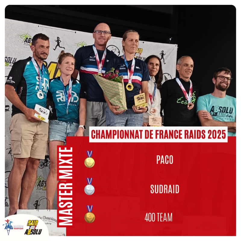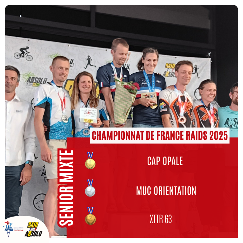 La lutte pour les autres places sur le podium a été particulièrement serrée. L’équipe mixte de Cap Opale, solide tout au long de la course, est championne de France en catégorie mixte et réalise l’exploit de terminer à la deuxième place au général, confirmant sa régularité et son expérience sur ce type d’épreuve. La troisième position revient à Sud Raid – Expénature, qui, grâce à une belle gestion, a su résister aux assauts de Bol d’Air et Vertical Raid'Orb. Ces deux équipes ont terminé respectivement en 4e et 5e position, à seulement quelques minutes du podium.