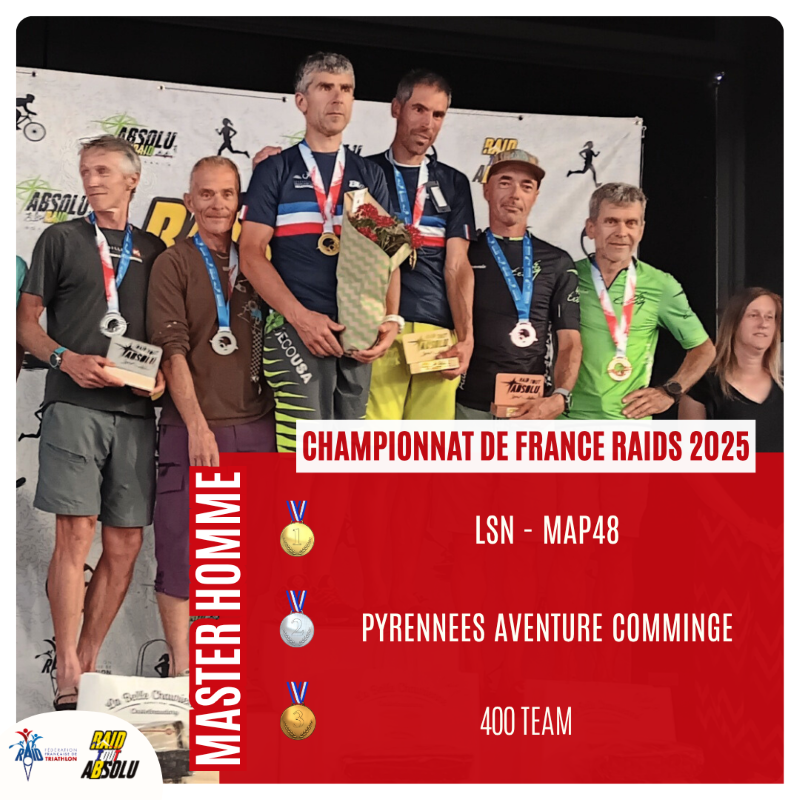 Pour les autres catégories, la lutte pour la deuxième place en catégorie hommes Master a été intense jusqu’au bout. Finalement, Lozère Sports Nature / Map 48 gagnent le titre devant Pyrénées Aventure Comminges qui monte sur la deuxième marche du podium, six minutes devant l’équipe 400 Team. De même, chez les Femmes seniors, la fin de course a été particulièrement serrée, avec l’équipe Les Minis Pouces prenant la deuxième place, pour seulement une minute d’avance sur Raidlink’s 07.