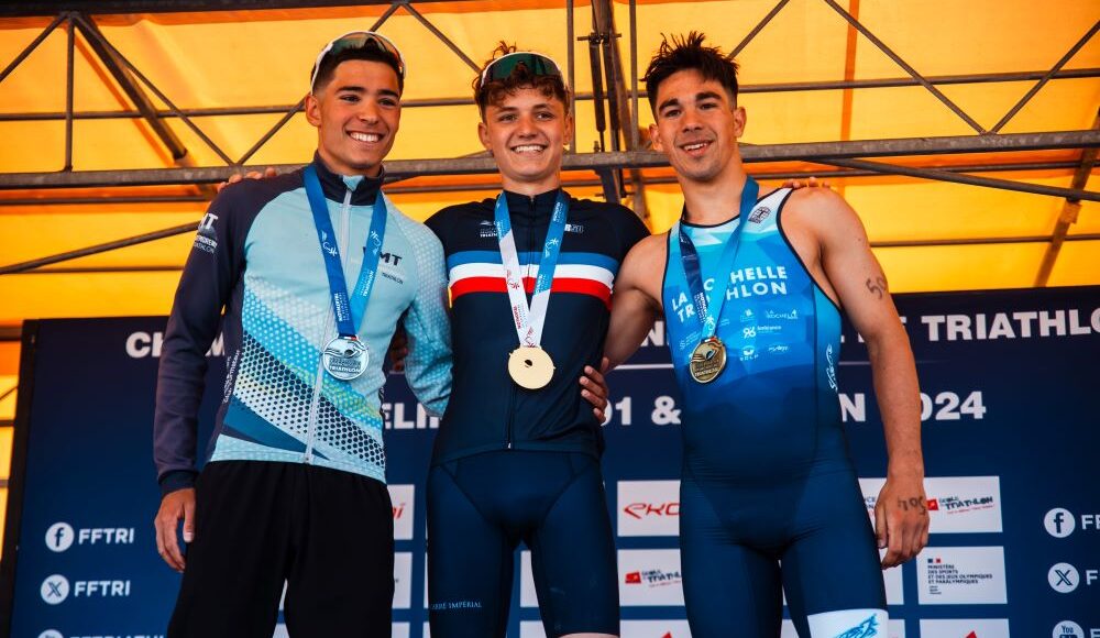 Chez les juniors hommes, nous retrouverons les cinq premiers du championnat de France Junior de Triathlon : Tristan DOUCHÉ, Nils SERRE GEHRI, Achille BESSON, Adam FOUCHAL et Nathan TEXEREAU (critère d’éligibilité pour ces cinq sportifs). Anton SERIEYS, 4e des tests de sélection des EDF Junior 2024 en ayant réalisé des temps en natation, cyclisme et course à pied correspondant à un critère d’éligibilité pour cette sélection nationale est également retenu. Enfin, Martin HUBNER et Milan LARIVIÈRE, respectivement 1er et 6ème des tests de sélection des EDF Junior en mars dernier les rejoignent (choix discrétionnaire pour ces deux sportifs).