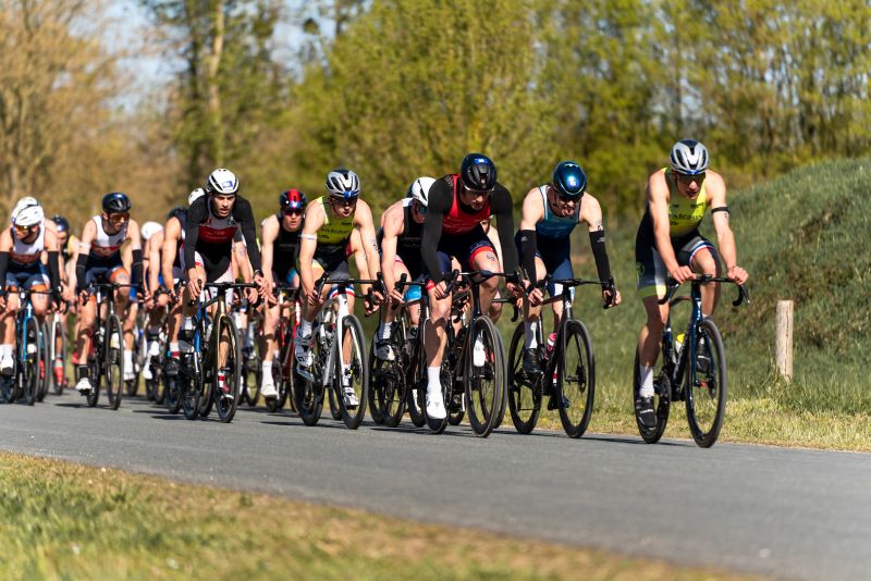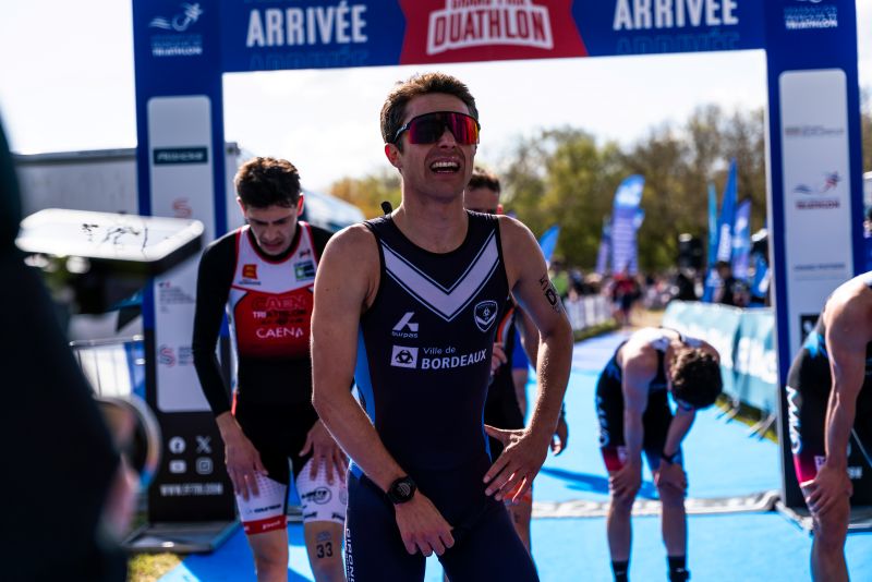 Les deux hommes étaient poursuivis par un duo composé de Thomas Laurent (Évreux A.C Triathlon) et de Rémy Guérineau (Caen Triathlon).