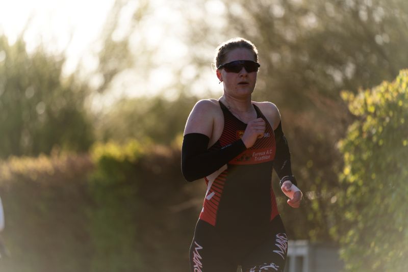 L’épreuve a été marquée par une échappée d’une dizaine de concurrentes qui s’est constituée à l’issue de la première course à pied. Après avoir poursuivi sur leur lancée à vélo, les fuyardes seront quasiment reprises à leur retour dans l’aire de transition.
