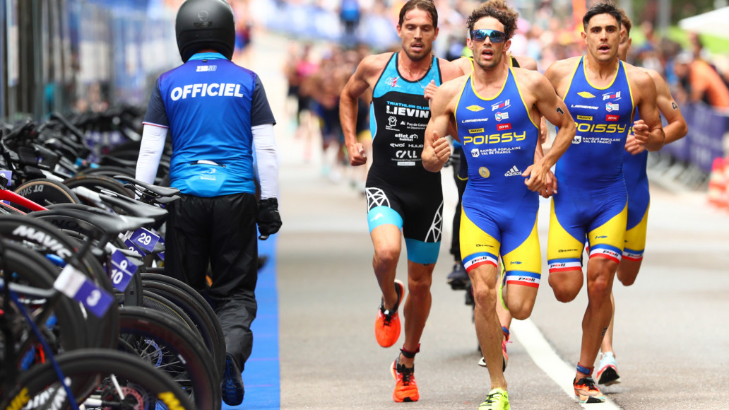 Grâce aux coups de boutoir des Pisciacais, le peloton de tête s’écrème au fil des tours. Il n’est plus constitué que de 26 éléments à son retour dans T2. Les plus rapides à la transition sont Anthony Pujades (Poissy Triathlon) et Louis Vitiello (Saint-Jean-de-Monts Vendée Triathlon).