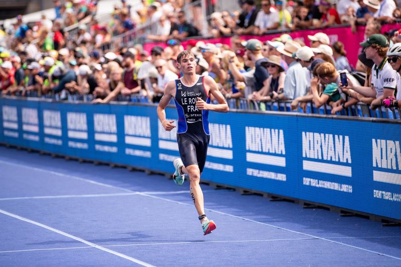 Troisième Bleu à l’arrivée, Étienne Le Roux (Pontivy Triathlon) termine à la 11e place.