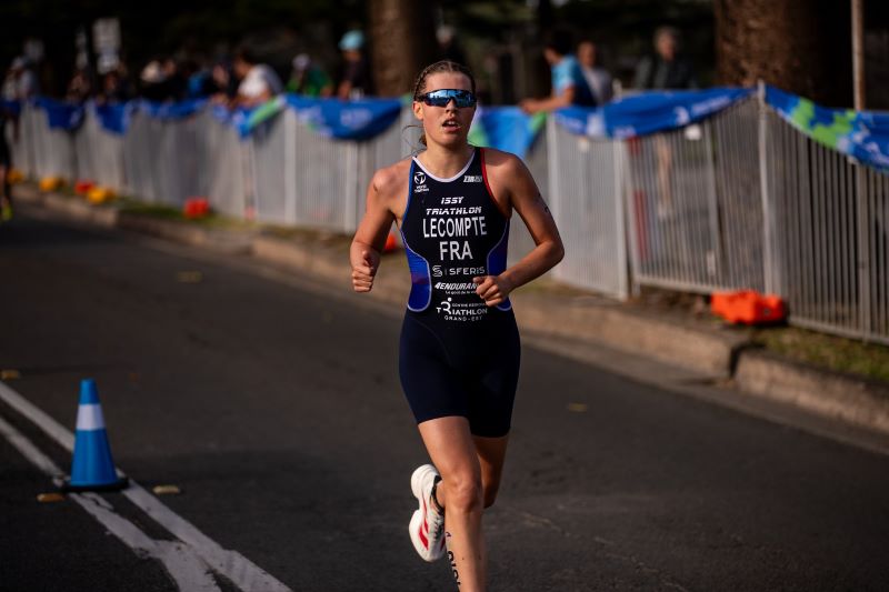 Ayant concédé respectivement 25 et 55 secondes en natation, la tenante du titre Ambre Grasset (Issy Triathlon) et Anouk Rigaud (Metz Triathlon) sont reléguées dans le peloton de chasse. Cette dernière sera, en outre, retardée par une crevaison.