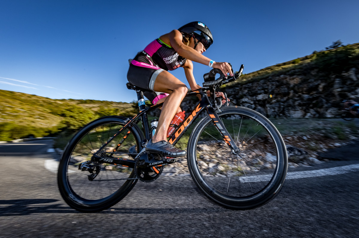 Sur le parcours vélo, Jeanne Collonge (Les Sables Vendée Triathlon), Championne de France de Triathlon longue distance, à Calvi en 2012 revient sur la tête de course. Elle est la première à poser le vélo avec 1’40’’ sur Justine Mathieux (Chambéry Triathlon) qui perd du temps en T2. Julie Iemmolo (TCG 79 Parthenay) tient quant à elle la 3ème place.
