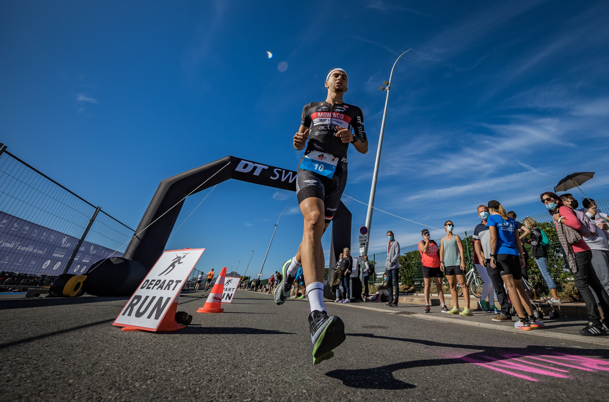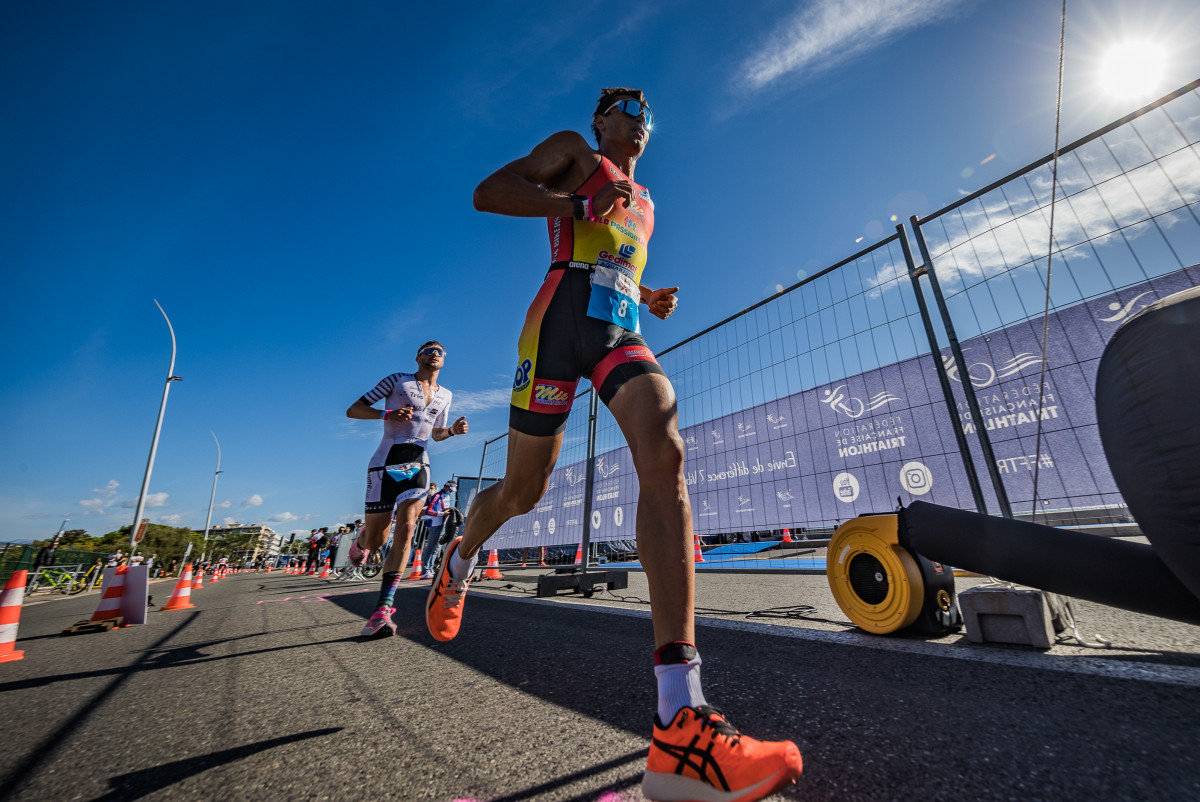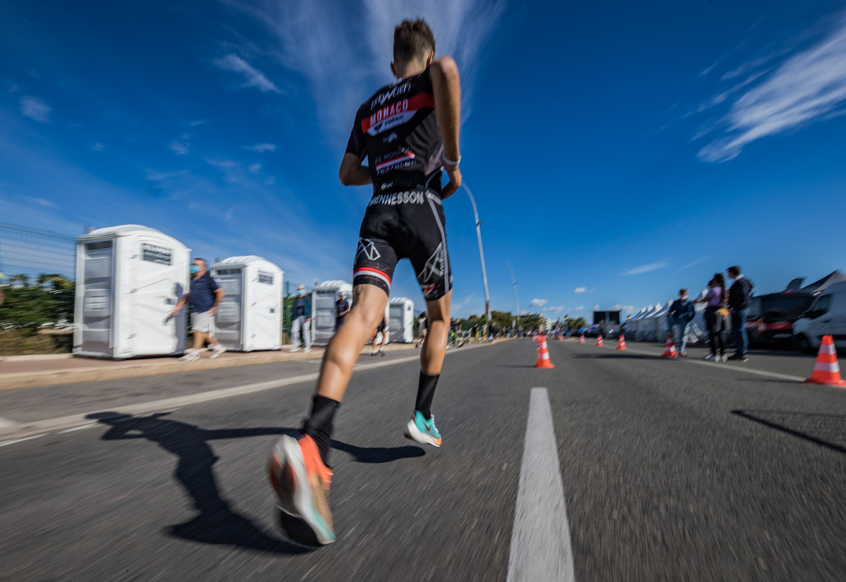 Le parcours vélo long de 90kms dans l’arrière-pays Cagnois avec la traversée des villages typiques de La Colle sur Loup, Le Pont du Loup, Tourrettes sur Loup, Saint Paul de Vence et son mythique col a permis à Mathis Margirier (Metz Triathlon) de revenir sur la tête de course et de creuser l’écart dans sa deuxième partie. En T2, il devance de 2min 40sec Clément Mignon (Triathl’Aix).