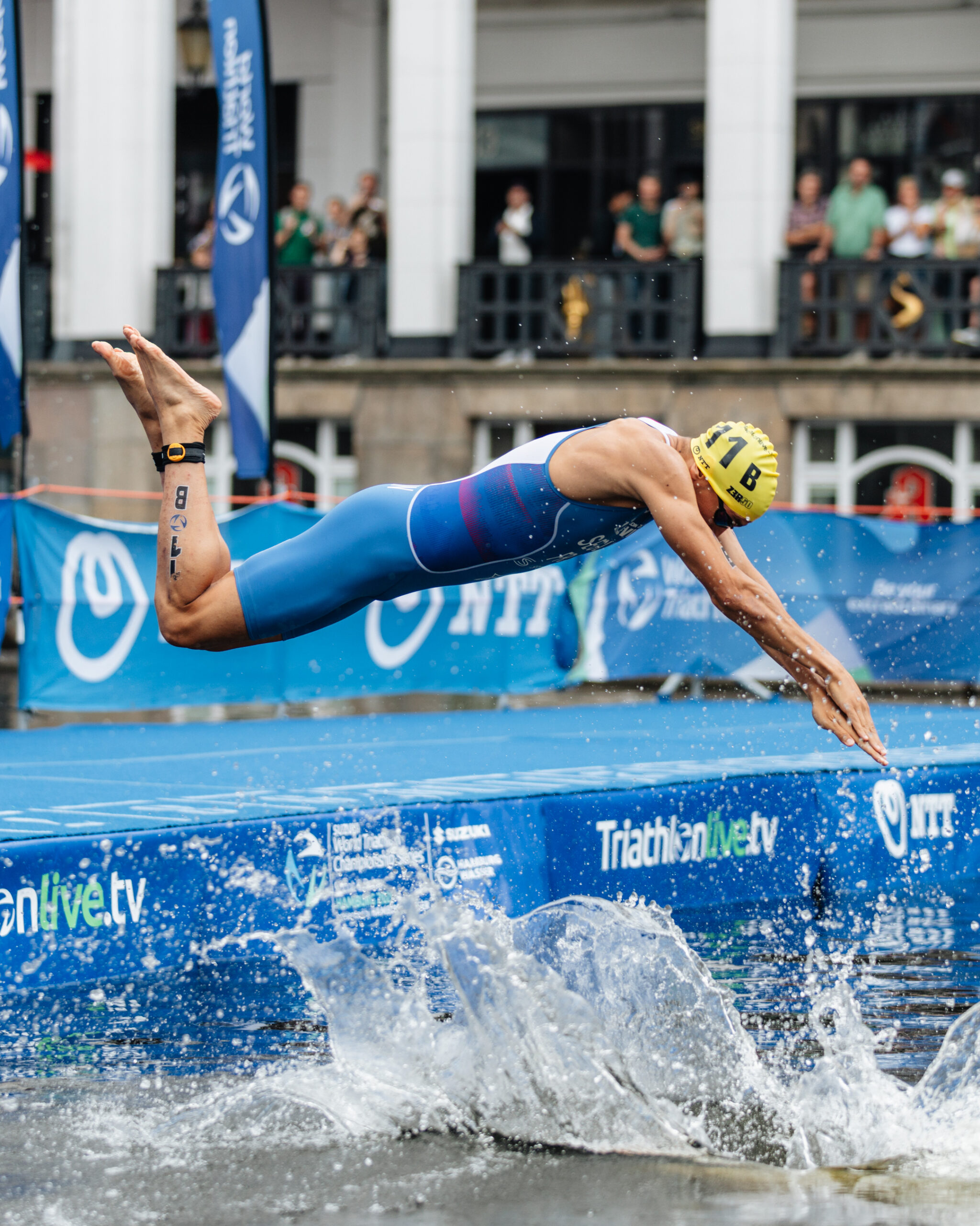 La championne olympique a récupéré du temps sur la tête de course dès la natation et a été à l’avant durant tout le vélo. Après une deuxième transition qui lui aura fait perdre du temps, Cassandre Beaugrand a remonté, sur le premier des deux tours à pied, une à une chacune de ses adversaires. Elle a augmenté son avance de quelques secondes dans le deuxième tour avant de passer le relais au dernier relayeur tricolore, Dorian Coninx. Troisième à la sortie de l’eau, le champion du monde 2023 s’est fait discret à vélo, une fois que Matthew Hauser (AUS) a fait la jonction avec le pack. Vainqueur hier en individuel, leader du classement mondial, l’Australien fait partie des favoris pour le dernier relais. C’est dans un groupe composé de quatre autres nations que Dorian Coninx a posé le vélo.
