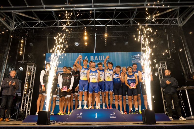 Metz Triathlon (seulement 15e au général avant la course) crée une énorme surprise en accédant à la 3e marche du podium grâce à une belle homogénéité du trio Aurélien Jem (8e), Thomas Hansmaennel (12e) et Théotime Lawson (19e).