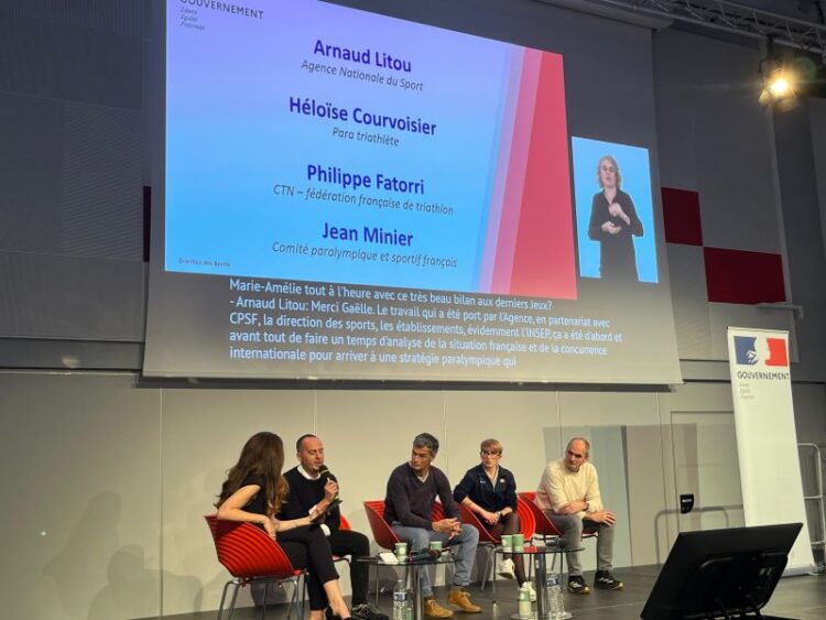 Dans ce cadre, la FFTRI avait été sollicitée afin de présenter son modèle de détection en Para triathlon. J’ai donc pu partager notre vision de la détection, notre expérience de huit ans désormais ainsi que les perspectives de notre action aux côtés de Jean Minier, directeur général du CPSF, Arnaud Litou (ANS) ainsi qu’Héloïse Courvoisier qui nous a fait le plaisir de partager son parcours depuis son passage à la détection en 2021 jusqu'à sa 7e place aux Jeux Paralympiques de Paris 2024.