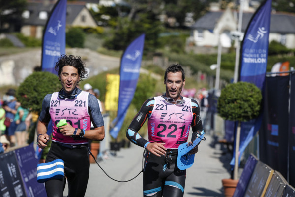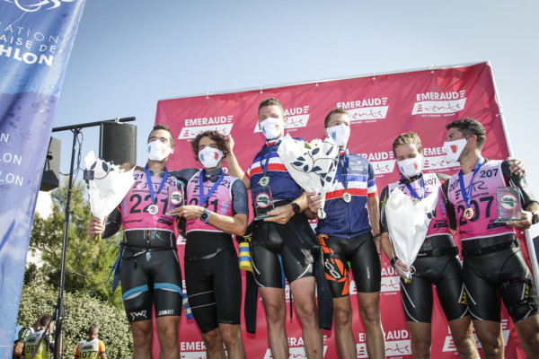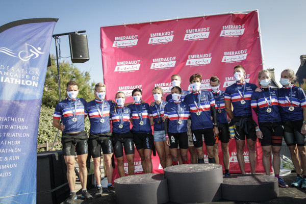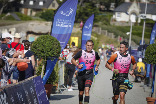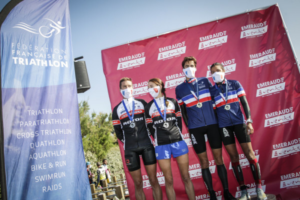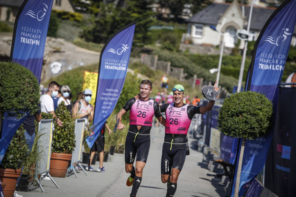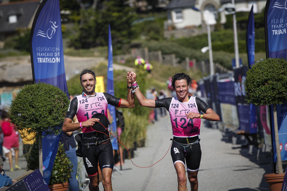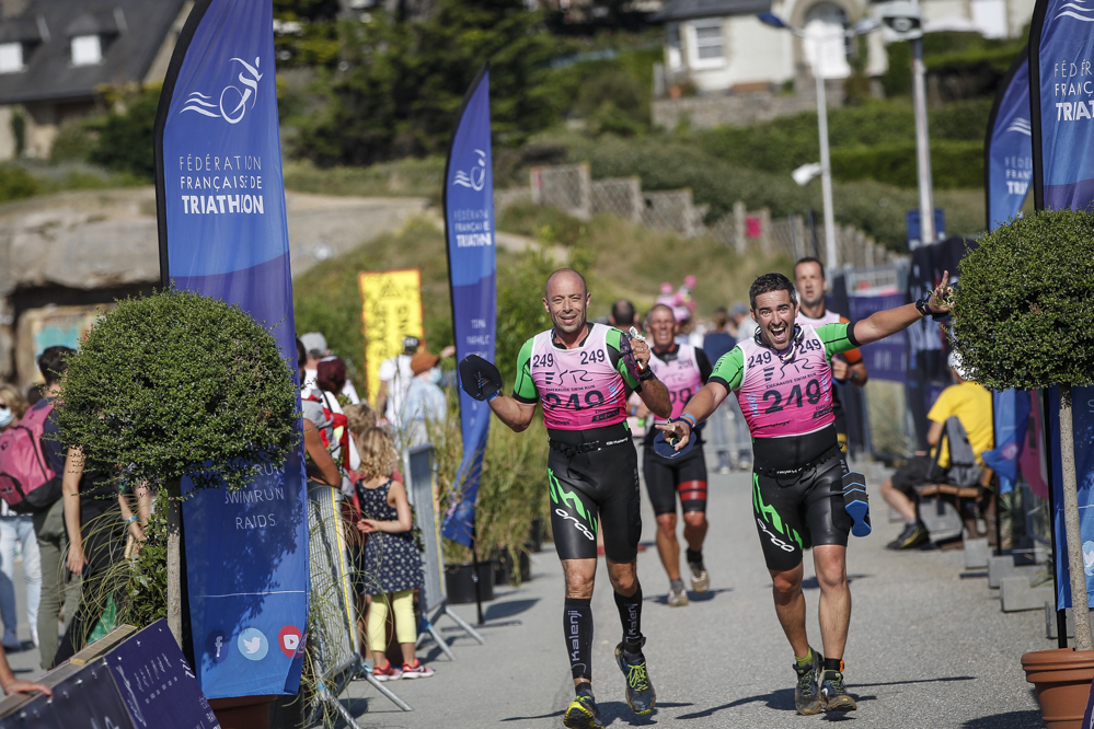 Chez les hommes, les spectateurs locaux ont été enchantés d'assister à la victoire de représentants bretons, en l'occurence Gaël Vielerobe-Valentin Le Sech (Espérance Chartres de Bretagne) qui ont devancé de près de huit minutes le tandem caennais, Marc Decatoire-Baptiste Taffin. Chez les femmes, les médailles d'or sont allées au cou de Cécile Bouché et Amélie De Hoyos (Meudon Triathlon).