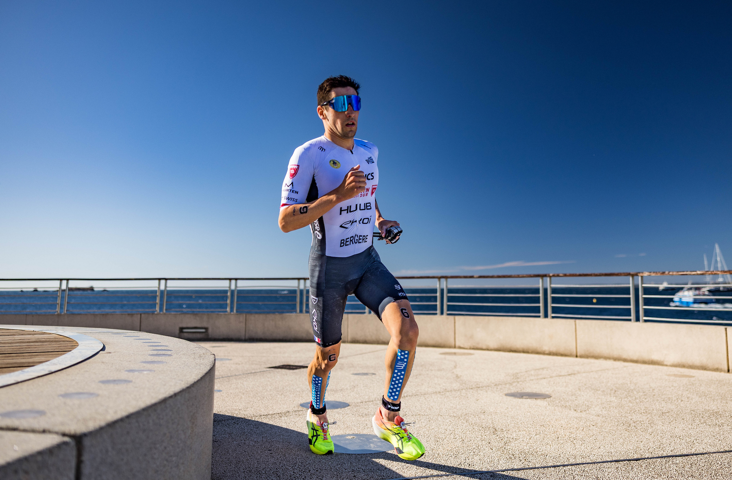 Seul en tête sur le début de la partie natation, Léo Bergere a ensuite rétrogradé de quelques places suite à une erreur à une bouée et se retrouve en queue de groupe. Au terme des deux kilomètres de natation disputés sur la plage du Veillat à Saint-Raphaël, le local de l’étape est bien le premier tricolore à sortir de l’eau en 8e position. Mathis Margirier est quant à lui sorti 11e de l’eau et Dylan Magnien a suivi à la 14e place.