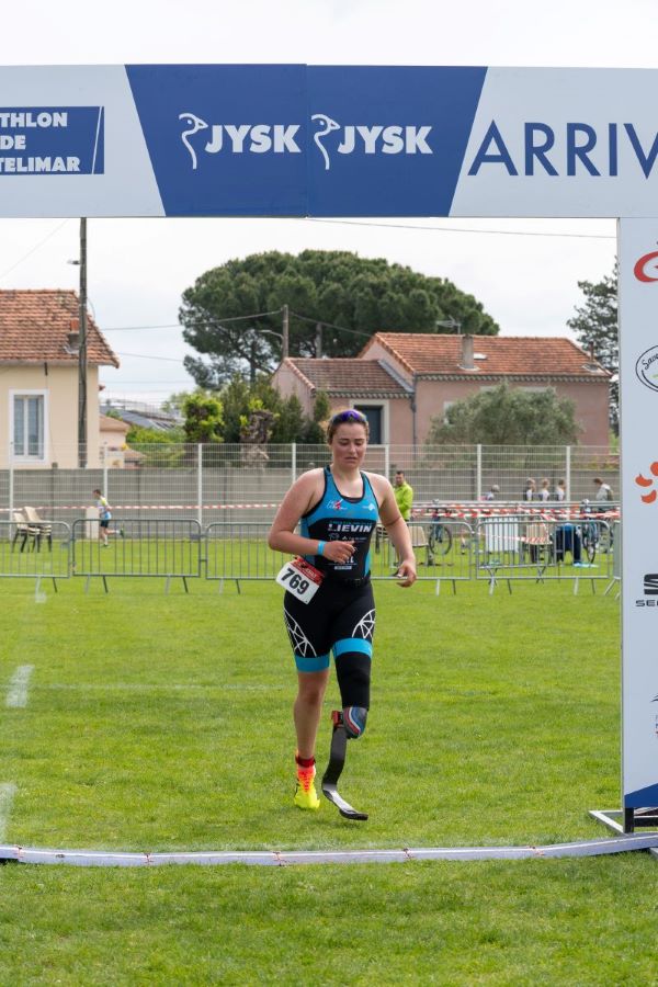 Je ne sais pas si l'épreuve de Montélimar a été l'occasion pour beaucoup de paratriathlètes de faire leurs débuts en compétition mais il y en avait ! On peut citer Zoé Réveillon du Triathlon Club Liévin, ex-jeune triathlète de très bon niveau, qui découvre cette année le Para triathlon dans la catégorie PTS4 (photo ci-dessous). Elle est déjà performante et ses progrès devraient être très rapides.