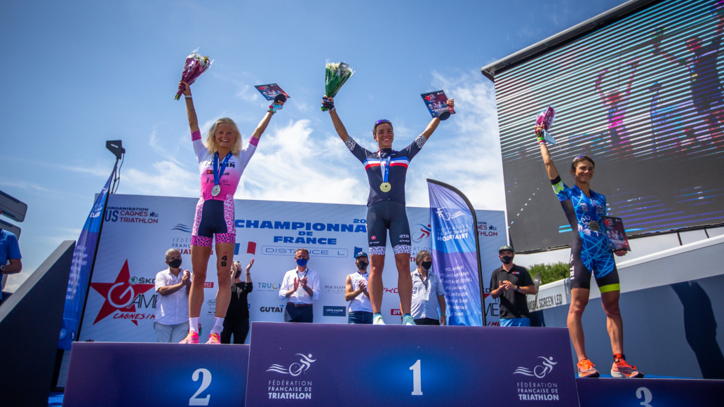 Manon Genêt, Championne de France de Triathlon longue distance 2021 : “Le titre de championne de France, ça me manquait. Je suis vraiment heureuse de l’avoir. Aujourd’hui c’était une belle bataille contre toutes les filles mais aussi contre moi-même. Je n’ai pas l’habitude à la sortie de la natation d’être aussi bien placée et cela aurait pu un peu me déstabiliser mais en fait, j’ai été un peu préparer à cela ces derniers temps. Après, j’ai simplement essayé de faire ce que je sais faire à l’entraînement et de voir ce dont j’étais capable aujourd’hui. Je crois que le travail a payé, même s' il va falloir continuer à bosser.”