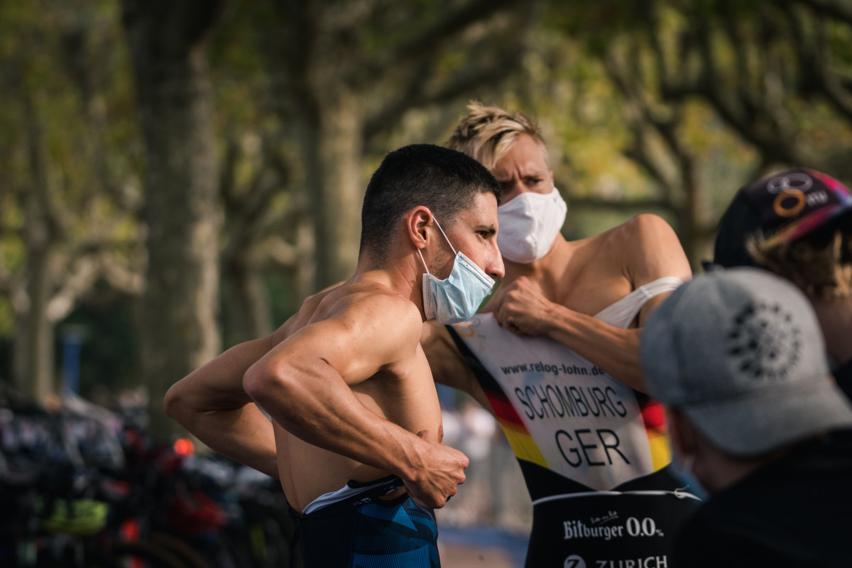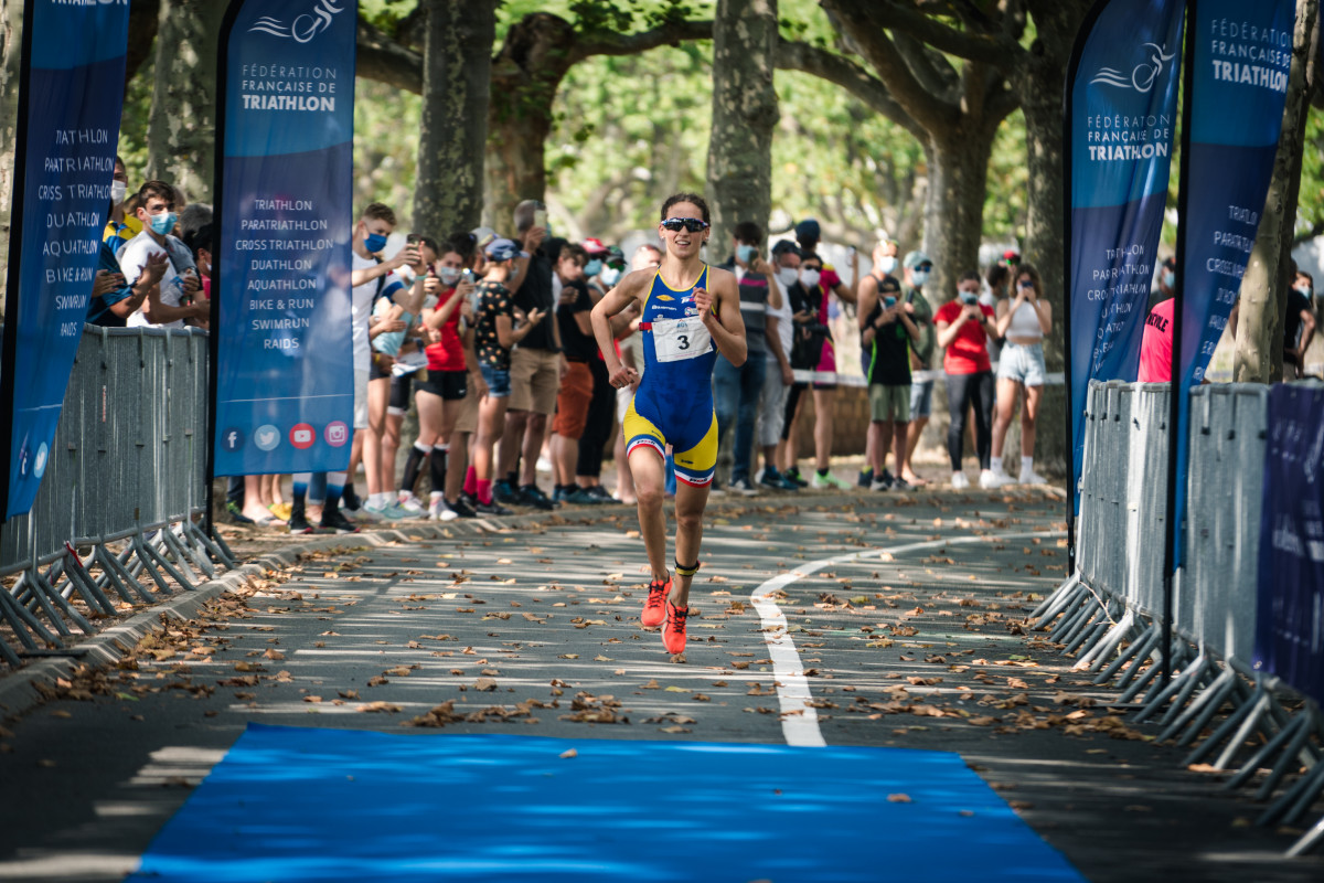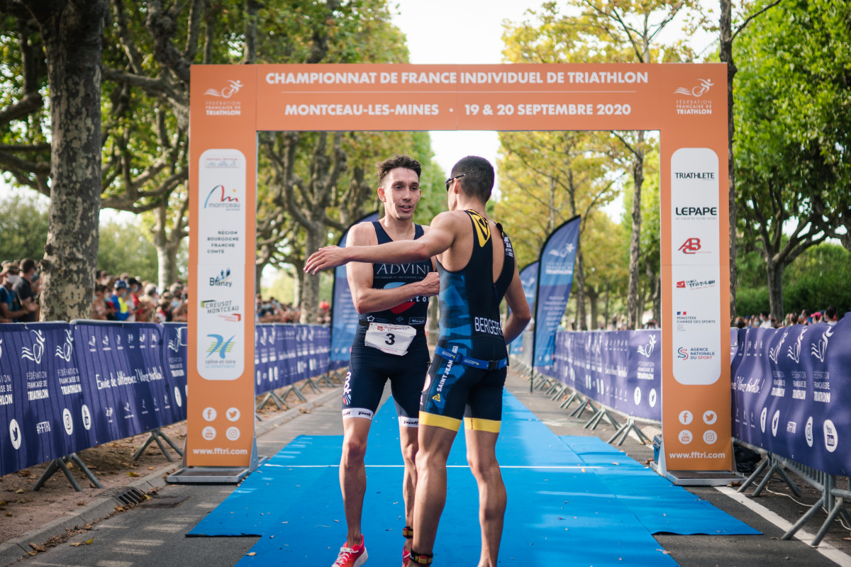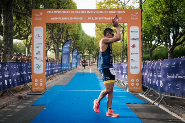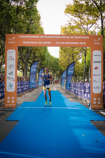 À l’entrée en zone de transition, on retrouve Léo Bergère en tête. Il effectue une transition éclair et s’élance en course à pied avec 3 secondes d’avance sur Le Corre, Coninx, Schomburg et Raphaël. Au bout d’un kilomètre, il a déjà repris 5 secondes de plus sur ceux-ci. Le Corre s’accroche et il nous dira par la suite qu’il aurait aimé pouvoir travailler avec Coninx pour ne pas laisser autant d’avance à Bergère mais l’athlète de Poissy Triathlon est contraint d’abandonner en raison d’une douleur au mollet. C’est finalement en un temps de 52’35 que Léo Bergère remporte son premier titre de champion de France, 8 secondes devant Pierre Le Corre qui regagne en confiance par la même occasion. Tom Richard a fait l’effort et complète le podium de ce championnat. Du côté des U23, Louis Vitiello continue sur sa lancée de 2019 et endosse pour la deuxième fois consécutive le maillot de champion de France, accompagné sur la deuxième marche par Yanis Seguin, qui confirme ainsi la belle saison 2020 qu’il effectue en D2.