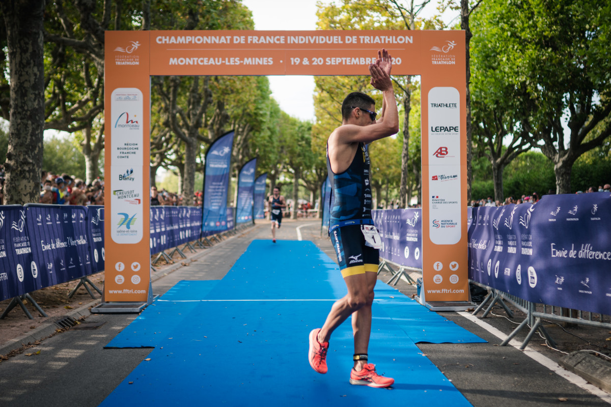 Montceau-les-Mines nous a offert une superbe journée de triathlon en accueillant les trois épreuves du Championnat de France Individuel de Triathlon ce 19 septembre 2020. Le club de Monceau Triathlon et ses bénévoles ont tout mis en œuvre pour faire de cet événement une très belle fête et mettre à l’honneur le plateau inédit d’athlètes qui ont répondu présent pour ce championnat, comme le souligne à juste titre Loïc Mentré, maître d’orchestre de ce week-end. C’est donc autour du Lac du Plessis que le gratin du triathlon français s’est retrouvé pour s’affronter sur un parcours exigeant. Au programme : 750m de natation avec un vent majoritairement peu favorable, 20 kilomètres de vélo sur un parcours de 5 kilomètres réalisé quatre fois et comprenant une bosse de 800m à 3% et enfin 5 kilomètres de course à pied effectués grâce à deux tours de lac sur terrain mixte. Les athlètes n’avaient pas le droit à l’erreur aujourd’hui et c’est Léonie Periault et Léo Bergère qui ont su montrer tout leur talent pour briller sur la plus haute marche du podium.