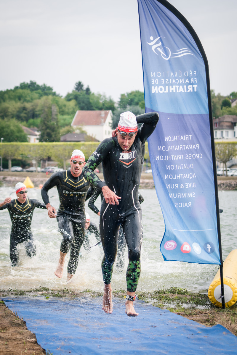La course Masters Hommes a elle été brillamment remportée par Lionel Roye. Sorti troisième de la natation, devancé de quelques secondes par les coureurs de Côte d’Opale Triathlon Calais Saint Omer Emmanuel Renard et Emmanuel Louchaert, il tente une échappée sur le vélo mais est rattrapé sur la première moitié de la course par les deux hommes accompagnés de David Gandon et Frédéric Pierrat. Alors que Louchaert décroche sur les 10 dernières kilomètres, Gaëtan Delecroix et Cyril Chambelland eux, raccrochent et ils sont six à poser le vélo en même temps. Roye prend de nouveau les devants et impose un rythme qu’aucun de ses poursuivants n’arrive à tenir. Il gagne son titre de champion de France Masters toutes catégories confondues en passant la ligne d’arrivée 30 secondes devant Gaëtan Delecroix, qui signe le meilleur temps de vélo après être sorti de l’eau en 20ème position. Encore plus impressionnant, soulignons la superbe performance de Yannick Bourseaux, figure bien connue en paratriathlon qui a offert à la France une 5ème place à Rio. Notre triathlète finit ce jour à Montceau-les-Mines la natation avec le 28ème temps et remonte un à un les concurrents pour se hisser avec panache sur la 3ème marche de ce podium de championnat de France.