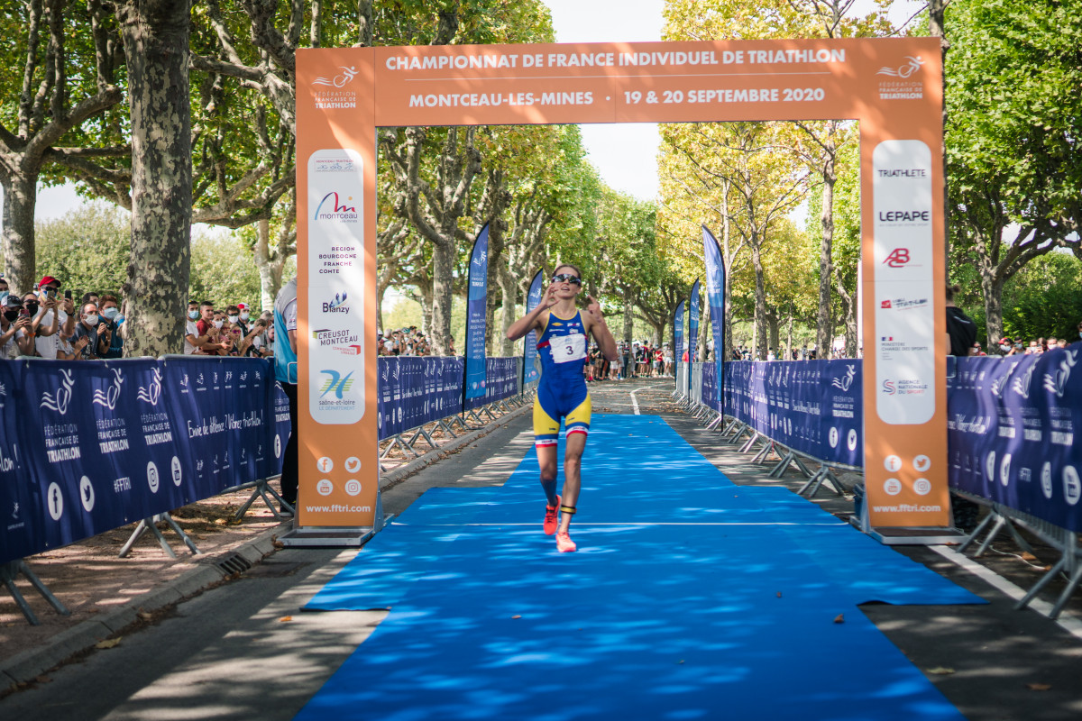 À l’entrée en zone de transition, on retrouve Léo Bergère en tête. Il effectue une transition éclair et s’élance en course à pied avec 3 secondes d’avance sur Le Corre, Coninx, Schomburg et Raphaël. Au bout d’un kilomètre, il a déjà repris 5 secondes de plus sur ceux-ci. Le Corre s’accroche et il nous dira par la suite qu’il aurait aimé pouvoir travailler avec Coninx pour ne pas laisser autant d’avance à Bergère mais l’athlète de Poissy Triathlon est contraint d’abandonner en raison d’une douleur au mollet. C’est finalement en un temps de 52’35 que Léo Bergère remporte son premier titre de champion de France, 8 secondes devant Pierre Le Corre qui regagne en confiance par la même occasion. Tom Richard a fait l’effort et complète le podium de ce championnat. Du côté des U23, Louis Vitiello continue sur sa lancée de 2019 et endosse pour la deuxième fois consécutive le maillot de champion de France, accompagné sur la deuxième marche par Yanis Seguin, qui confirme ainsi la belle saison 2020 qu’il effectue en D2.