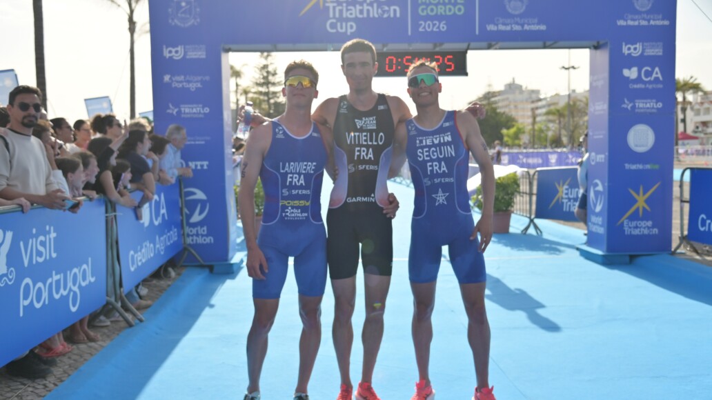 Louis Vitiello, Milan Larivière, Yanis Seguin, voilà le tiercé gagnant de cette manche de coupe d’Europe disputée à Monte Gordo (Portugal)/. Au total, 5 Français ont terminé dans le Top 7 chez les hommes. Chez les femmes Appoline Foltz signe le meilleur résultat tricolore avec une 8e place.