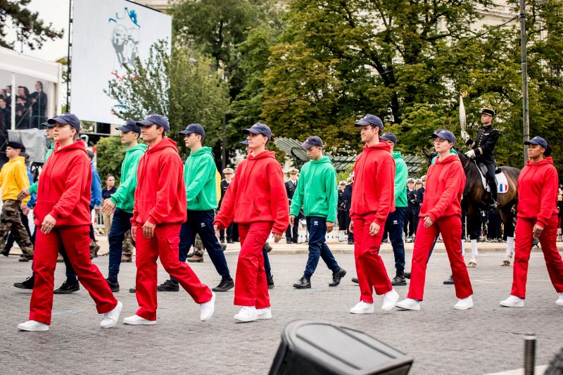 Mes motivations étaient simples. C’était l’occasion rêvée de participer à un événement historique et de représenter tous les volontaires Service Civique. Nous étions 9 au total et avions tous des missions en lien avec le sport. Cela tombait bien car le thème du défilé cette année était “ L’Olympisme et les Armées.”