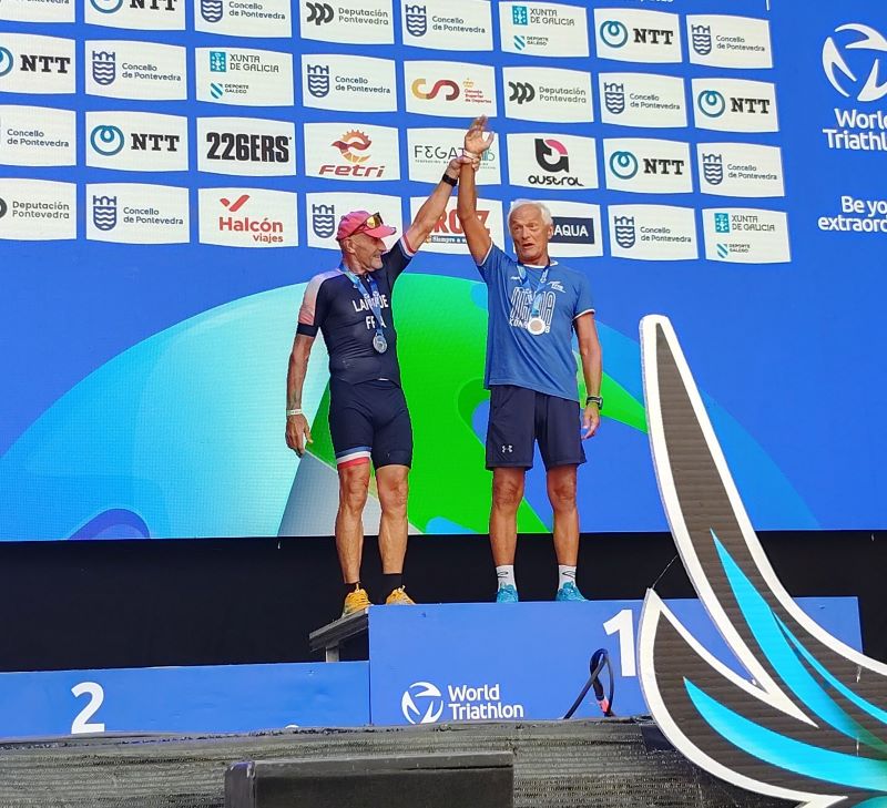 Le Championnat du monde de Swim Bike à Pontevedra est également un très bon souvenir. J'ai conquis le titre de vice champion du monde de ma catégorie, battu seulement d'un demi vélo à l'arrivée mais avec le même temps que le vainqueur ( 6 heures 20 minutes 28 secondes). En fait, je chassais mon adversaire, un Italien, qui donnait des signes de faiblesse depuis plusieurs kilomètres. Il m'a manqué deux mètres pour être champion du monde, mais c'est la course : il faut un premier et un deuxième! J'étais très heureux quand même de cette performance mondiale.