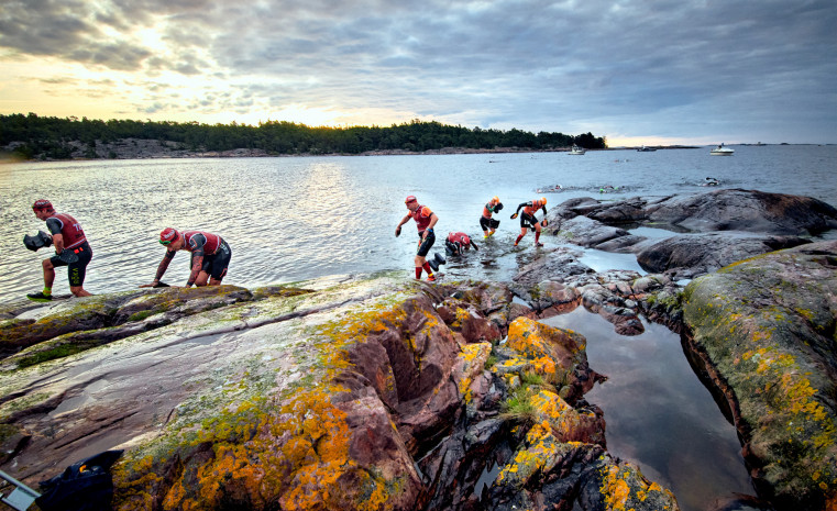 A la différence du triathlon qui possède des aires de transition permettant de changer de tenue/matériel, les swimrunners conservent leur tenue et leur matériel sur l’ensemble du parcours.