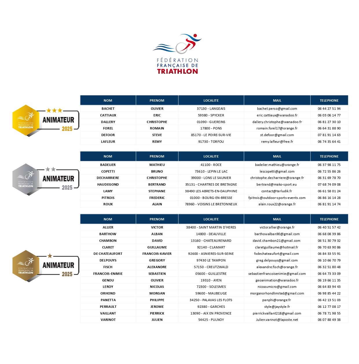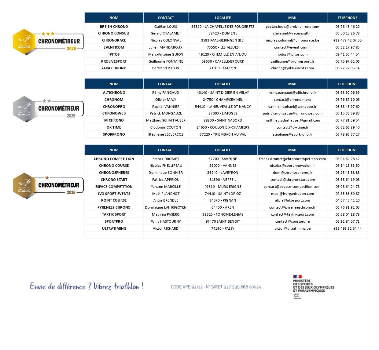 Composition des équipes Lindahls Pro+ Triathlon Séries
